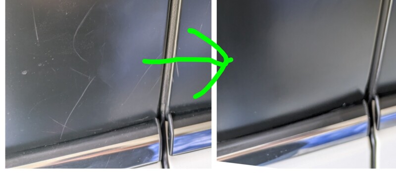 パーフェクトではないが、パッと見ではキズがかなり目立たなくなっている。