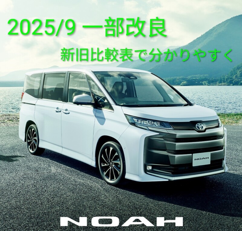 【2025年9月】トヨタ新型ノア(NOAH)一部改良まとめ|新旧比較表でわかりやすい
